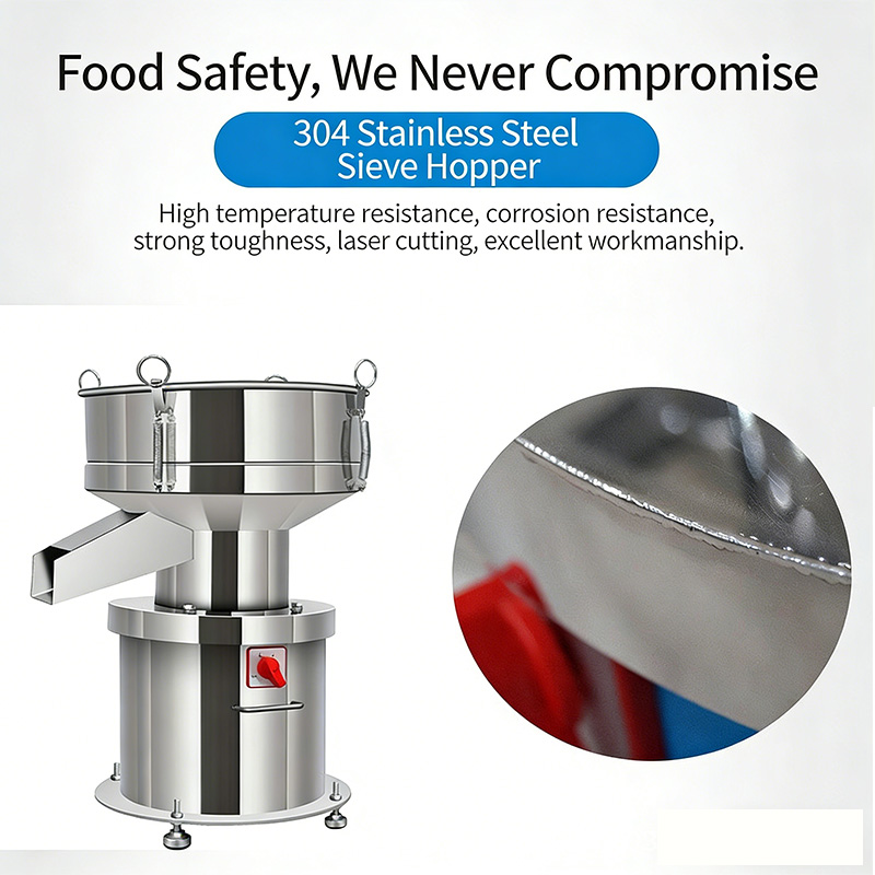 A2: Yes. The whole machine is made of 304 stainless steel, which meets food-grade and pharmaceutical hygiene standards, non-toxic and odorless, safe for screening food, medicinal and cosmetic powders.
