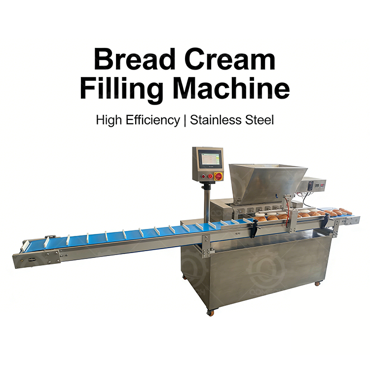 The SF-6000 series Cream Filling Machine comprises two models—SF-6000-1 (for round bread) and SF-6000-2 (for baguettes)—with identical core specifications: Dual-voltage compatibility (220V/380V), 1.5 kW power, maximum filling frequency of 15 times/minute, production capacity of 4,000 pieces/hour, net weight 450 kg, dimensions 3000×1200×1450 mm, constructed with food-grade stainless steel; Both models support 4-8 adjustable filling heads, customizable filling volumes from 10-150 ml, accommodate dough pieces up to 200 mm long × 80 mm wide, and feature a 40-liter large-capacity hopper for continuous operation.