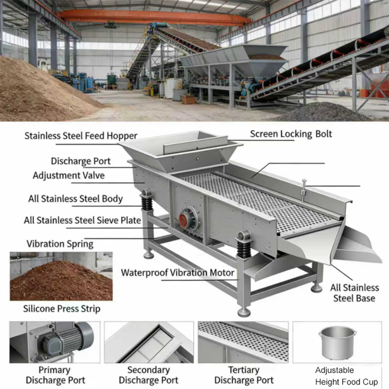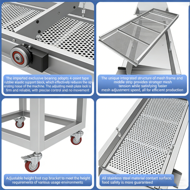 A3: Its smooth stainless steel surface and simple structure allow easy cleaning—just wipe with a damp cloth or rinse with clean water. Regularly check the vibration motor and screen mesh for wear to ensure long-term stable operation.