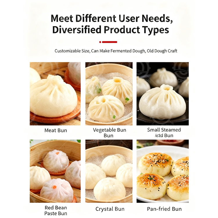 2.Premium & Consistent Quality: Advanced dough-feeding system preserves gluten texture, ensuring buns have uniform pores, smooth surfaces, and neat patterns—surpassing handmade quality.
