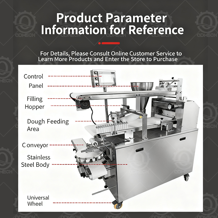 3.Hygienic & User-Friendly: Made of food-grade stainless steel to meet hygiene standards . Independent motors for forming, dough, and filling systems reduce faults, while detachable parts enable easy cleaning.