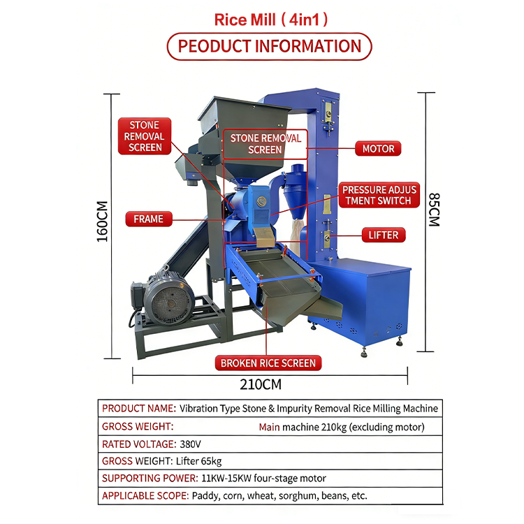 2.Versatile Application: Suitable not only for rice processing but also for corn shelling, wheat milling, and other grain processing tasks, meeting diverse grain processing needs.