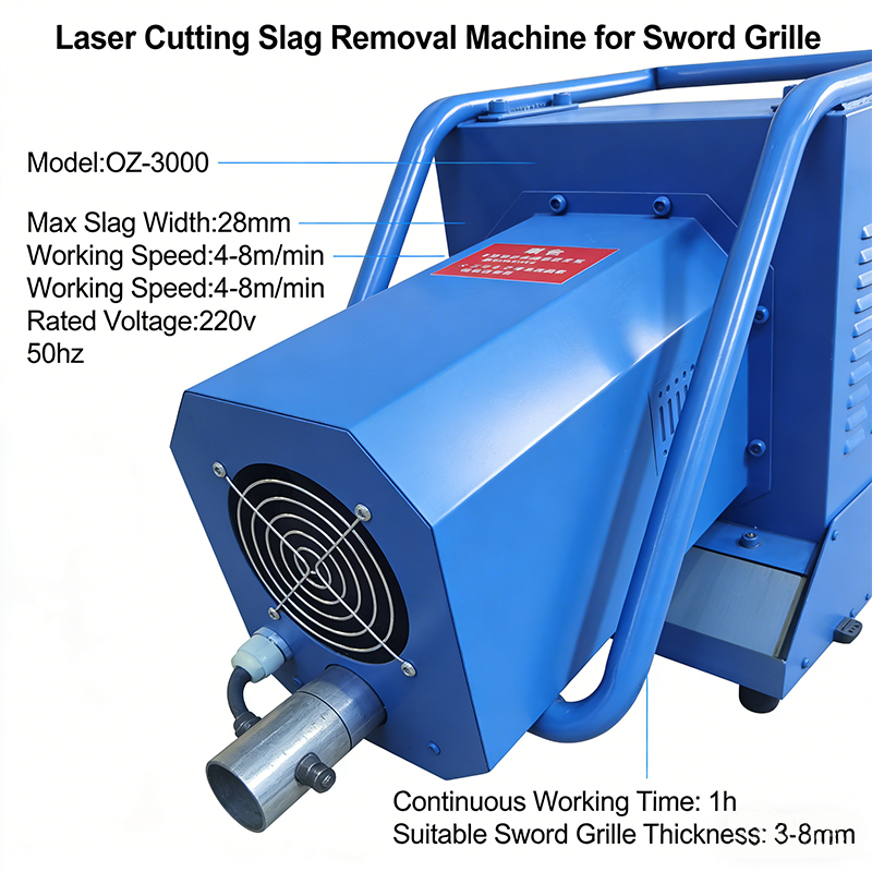 Model: OZ-3000 | Product Name: Laser Cutting Slag Removal Machine for Sword Grille