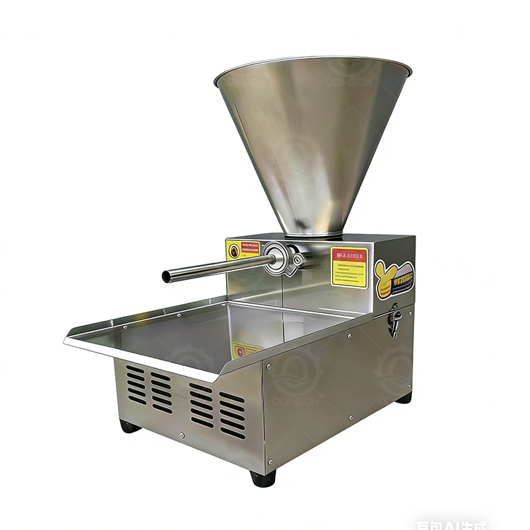 The Sausage Filling Machine (Brand and Model: GCJ-001) is constructed with high-quality stainless steel, ensuring food safety, durability, and easy cleaning. It operates on a rated voltage of 220V and a power output of 1500W, delivering reliable performance for sausage production. With a compact machine size of 37*58*68cm, it saves space in various processing environments, while its net weight of 45kg balances stability during operation and convenient mobility. This equipment is well-suited for small to medium-sized food processing workshops, catering businesses, and homemade sausage production needs.